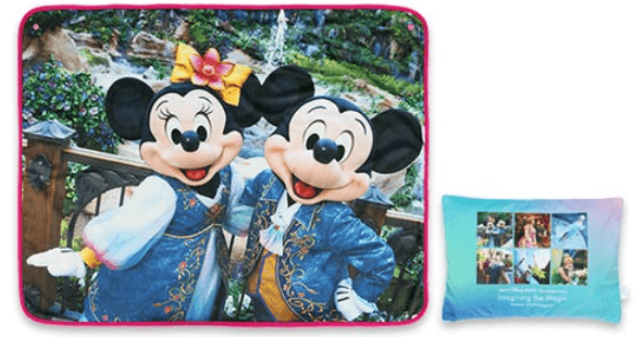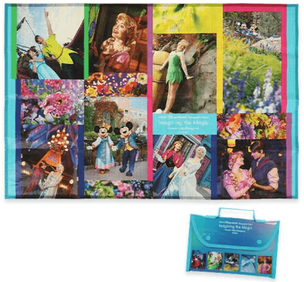 ファンタジースプリングス内で撮影されたディズニーの仲間たちの作品を活かしたブランケット。使わない時に仕舞っておけるケースも付いています。