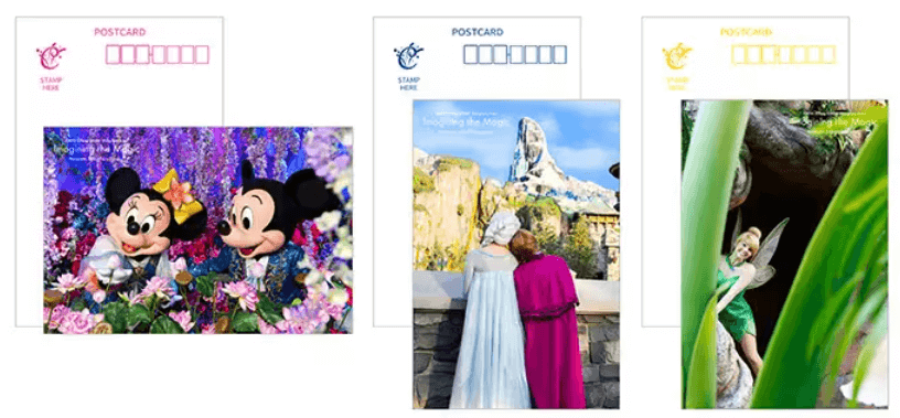 ファンタジースプリングスで撮影されたアナとエルサの写真がポストカードで登場。お気に入りの場所に飾るのも素敵ですね。