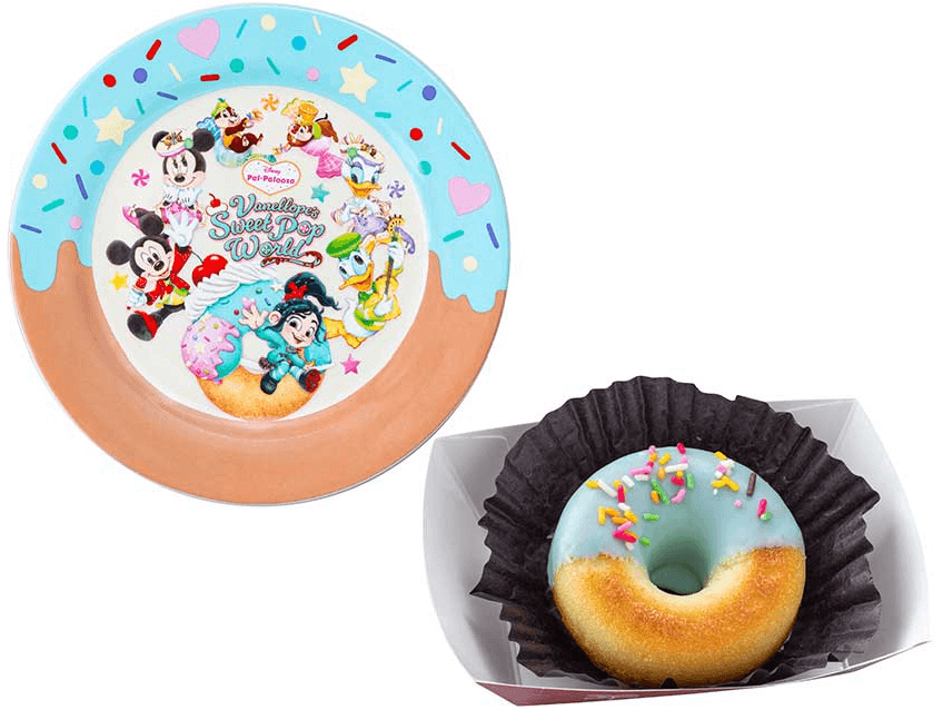 ドーナツをイメージしたスーベニアプレート。真ん中にはヴァネロペのスウィーツ・ポップ・ワールドのイラストがデザインされています。