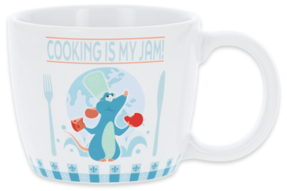 ディズニー&ピクサー映画『レミーのおいしいレストラン』のレミーが描かれているマグカップ。
